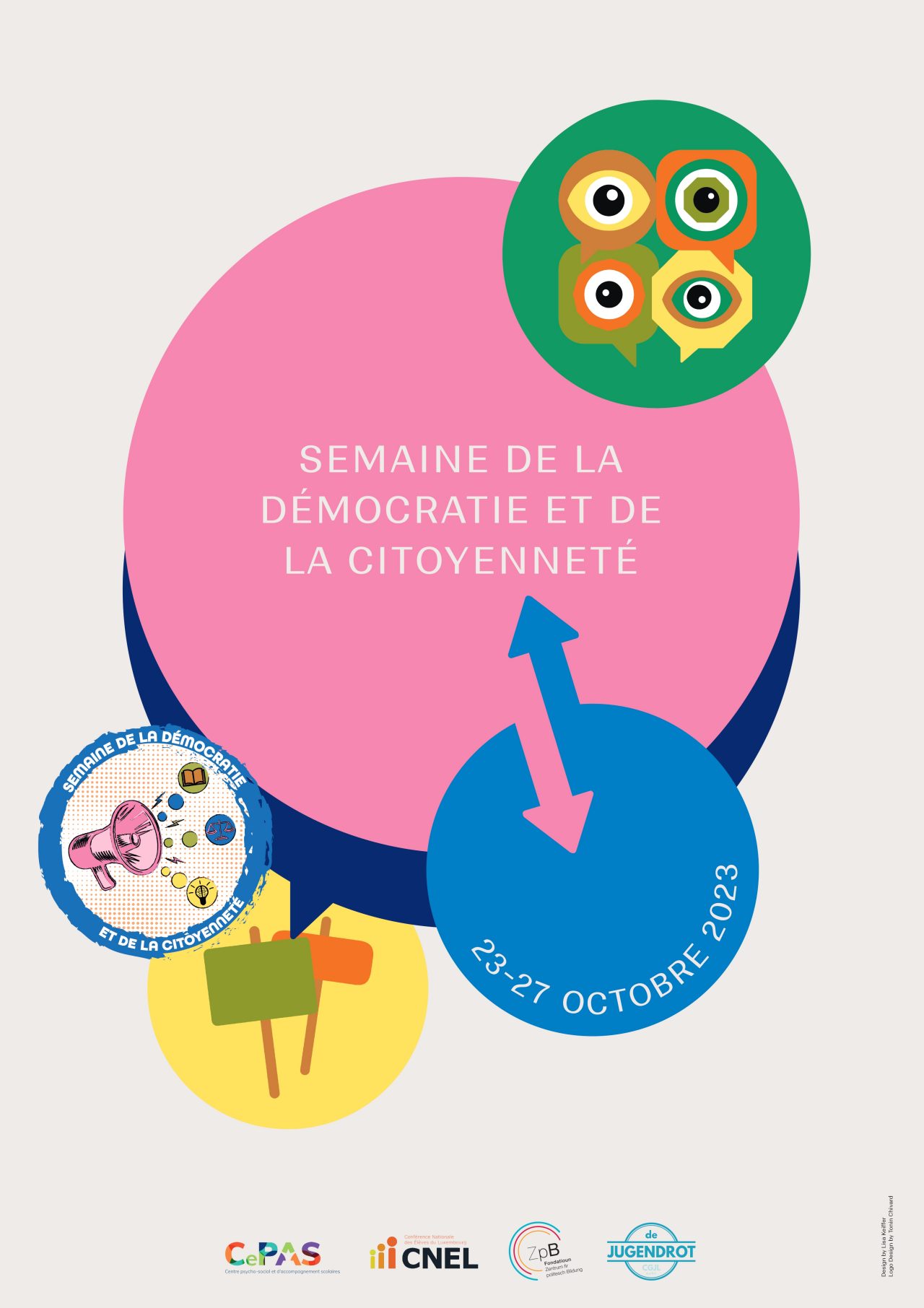 Lancée en 2022, la Semaine de la démocratie et de la citoyenneté est organisée chaque année dans les lycées par un comité de pilotage composé du Centre psycho-social et d'accompagnement scolaires (CePAS), du Zentrum fir politesch Bildung (ZpB), du Jugendrot et de la Conférence nationale des élèves du Luxembourg (CNEL).